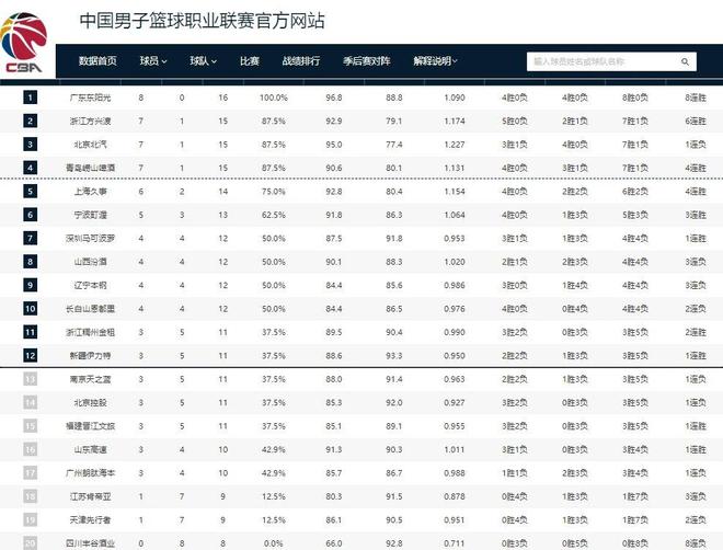 广东男篮联盟第一,广厦送北京赛季首败,山东爆冷,CBA最新排名