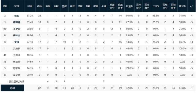 另一位就是刚刚伤愈复出的徐杰,他继续延续着受伤前的火热状态,进攻端14投7中高效砍下22分,关键时刻多次挺身而出,用强硬防守和精准投篮为球队续命,其表现堪称本赛季最佳之一。