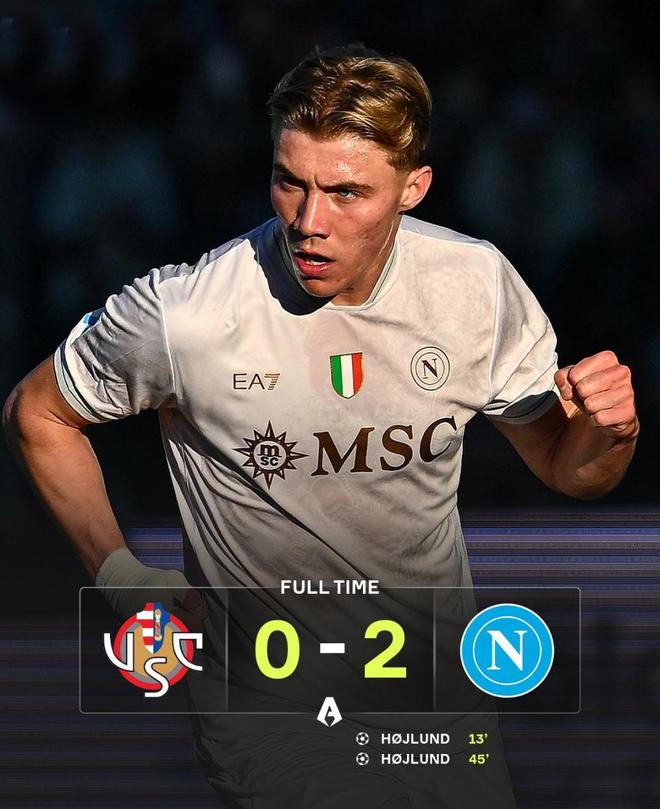 上半场结束前,丹麦前锋再度完成补射破门,半场双响,直接杀死比赛悬念。2-0的比分保持到终场,那不勒斯顺利带走三分。