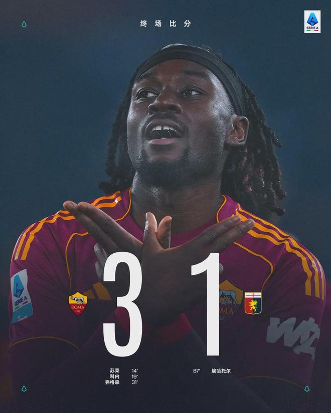 2025年12月30日凌晨,罗马奥林匹克球场灯火通明,意甲第17轮激战正酣。马蒂亚斯·苏莱、夸迪奥·科内和埃文·弗格森在上半场各入一球,最终罗马以 3-1 战胜热那亚,积分达到33分,超越尤文图斯,重返积分榜第四位。