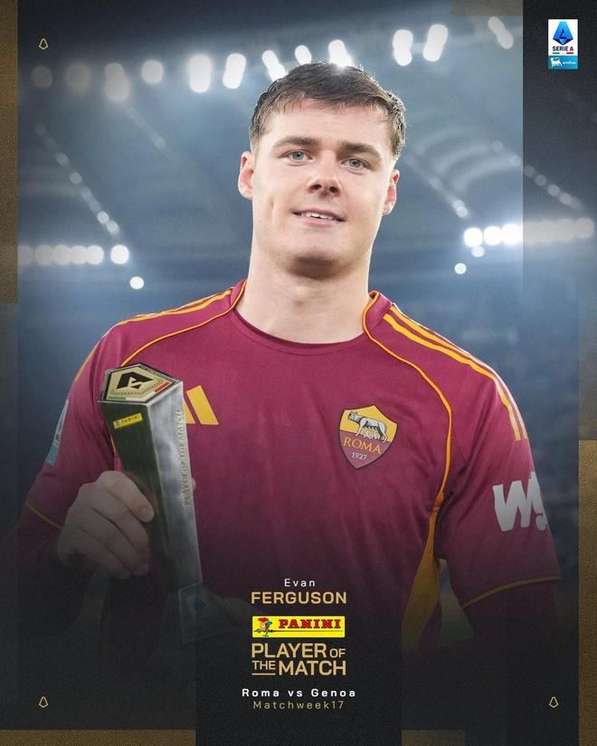 北京时间12月30日,在意甲第17轮的比赛中,罗马依靠马蒂亚斯-苏莱、夸迪奥-科内以及埃文-弗格森的进球主场3-1击败热那亚,赛后此前贡献一传一射的埃文-弗格森被意甲官方评为了本场比赛的最佳球员。