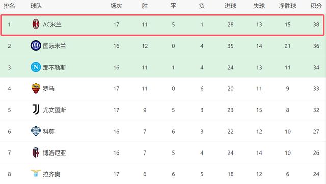 早知道|AC米兰先赛一场跃居榜首