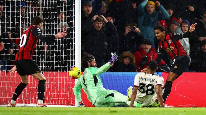 伤停补时的最后时刻,伯恩茅斯通过边线球发起了最后一攻,希尔直接把球掷向禁区,利物浦球员在防守时出现失误,赫拉芬贝赫和远藤航都没能完成解围,皮球误打误撞来到了伯恩茅斯前锋阿德利面前,在第一次射门被封堵后,他紧跟着补射完成进球,帮助伯恩茅斯在最后时刻上演了绝杀,以3-2战胜了利物浦,送给了红军2026年的首场败仗。