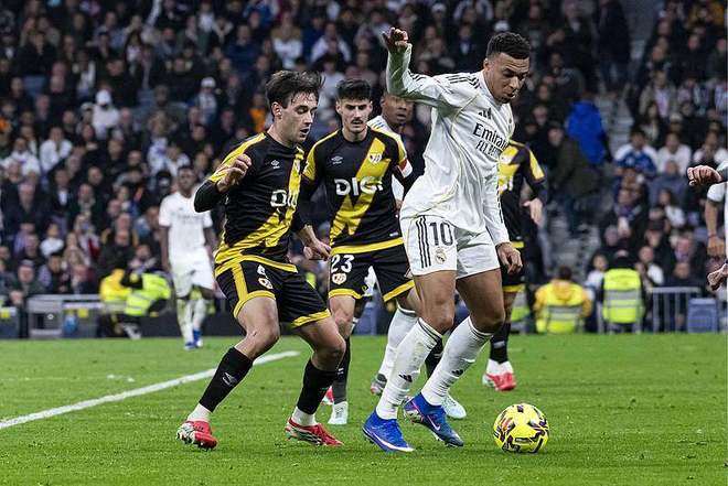 上半场第15分钟,维尼修斯带球突入禁区,面对3名后卫连续晃动后,兜射破门,皇马1-0巴列卡诺,下半场第49分钟,巴列卡诺传球至禁区,德弗鲁托斯跟进抽射破门,巴列卡诺扳平。全场补时阶段,卜拉欣造点,姆巴佩点球破门,皇马2-1绝杀巴列卡诺。积分榜上,皇马落后巴塞罗那1分,排名联赛次席。