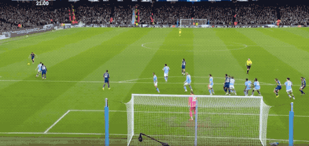 第41分钟,纽卡斯尔再次获得任意球,托纳利传中,高大后卫丹伯恩头槌破门,但丹伯恩落入曼城的越位陷阱,进球被秒吹。